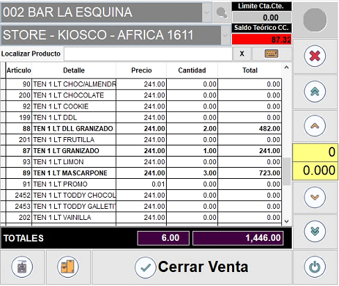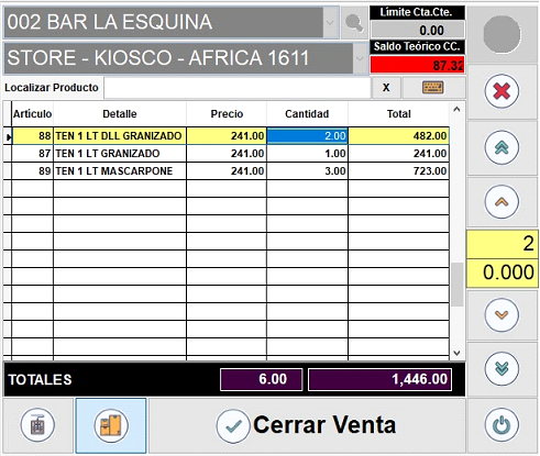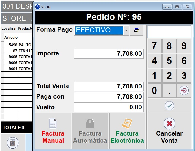 Una vez confeccionado el pedido seleccione “Cerrar Venta”, observará que se despliega el Panel de Vuelto y podrá finalizar el proceso de la venta.