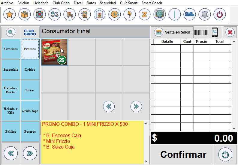 - MENSAJE: Si posee una Comandera conectada a su POS, en cada Venta Club Grido aparece una notificación, indicando que se enviará un correo con el resumen de puntos del Socio.