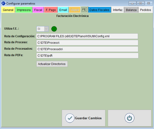 Las configuraciones la realiza el Centro de Atención al Cliente de SmartFran. Para verificar si conecta, observe en la primera línea, donde dice Utiliza F.E., debe decir SI, al lado se presenta un círculo que debe estar en color verde. Si no conecta, solo reinicie el SF-POS.