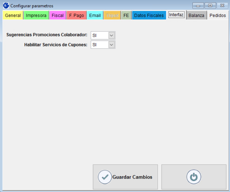 En este apartado seleccione la opción de "Sugerencias Promociones Colaborador" y "Habilitar Servicios de Cupones":