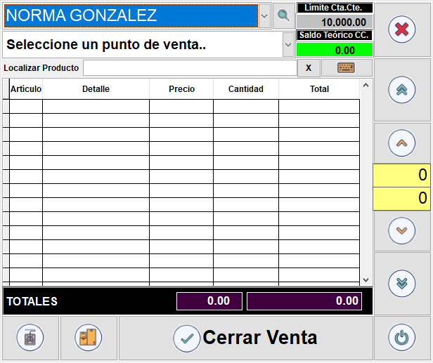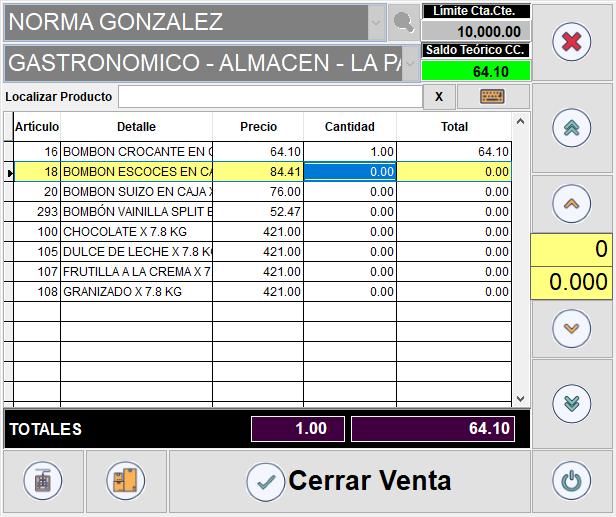Debajo de “Punto de Venta”, se halla el filtro “Localizar Producto”, donde localizará rápidamente el artículo deseado con sólo tipear las 3 iniciales del mismo.