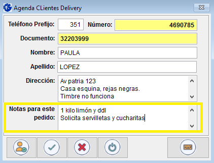 Agregar notas al pedido o realizar modificaciones en un cliente ya cargado en la agenda delivery