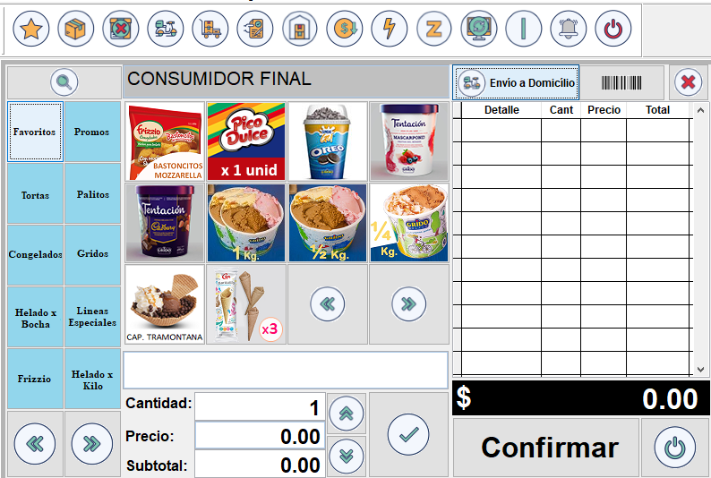 Al elegir el tipo de venta Envío a Domicilio, observará que se despliega la siguiente ventana, que corresponde a la Agenda Delivery, aquí va a poder administrar los clientes frecuentes, tomar nota de los sabores solicitados y generar comandas de pedidos con toda la información necesaria.