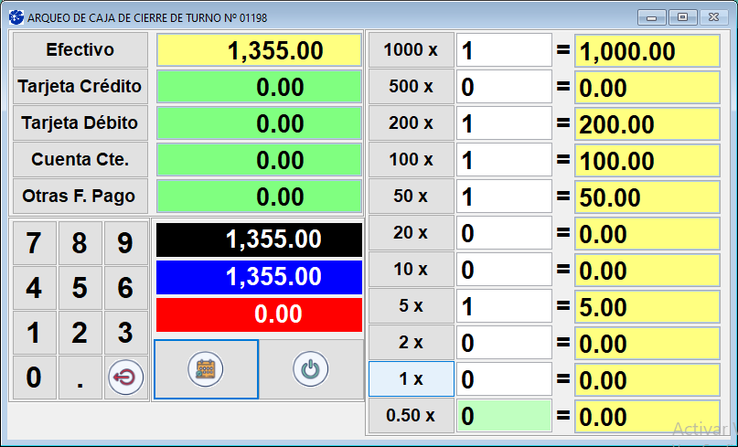 Esta función permite realizar el control de caja antes de cerrar el turno o durante el turno en proceso. Dispone de la opción de imprimir.