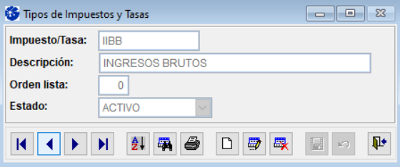 Utilice esta planilla para agregar los tipos de impuestos y tasas que apliquen a la Franquicia, Proveedores o Clientes, para que al momento de cargar los comprobantes puedan ser seleccionados.