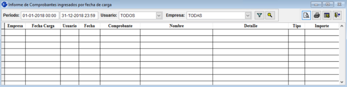Difiere de la planilla Consultar Comprobantes porque puede realizar filtros por fecha, usuario, y empresa a la que se creó el comprobante.