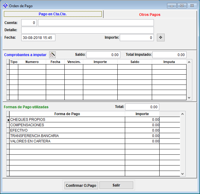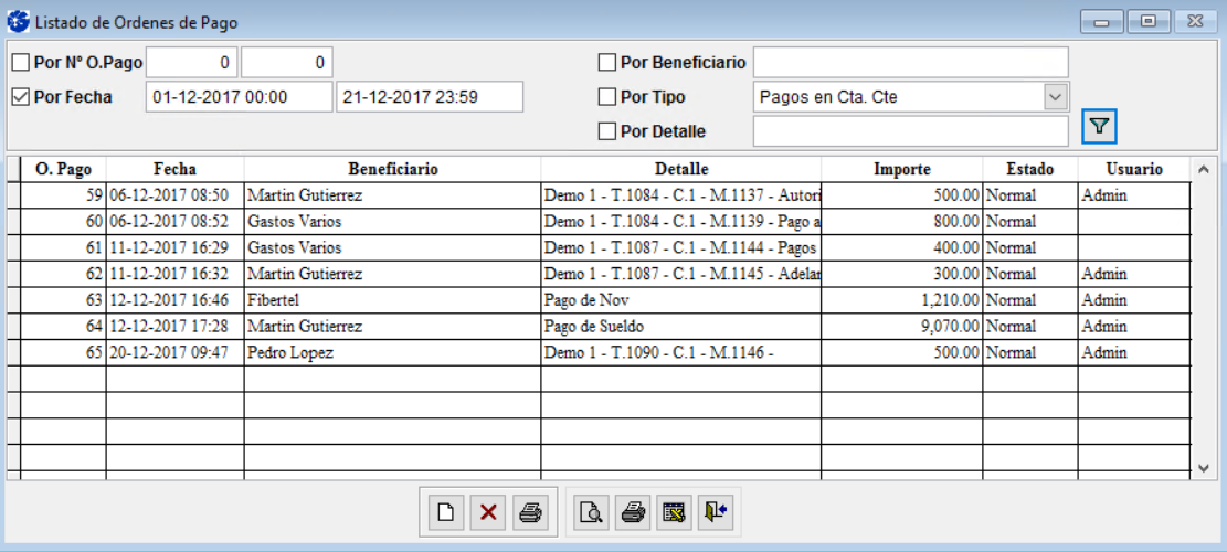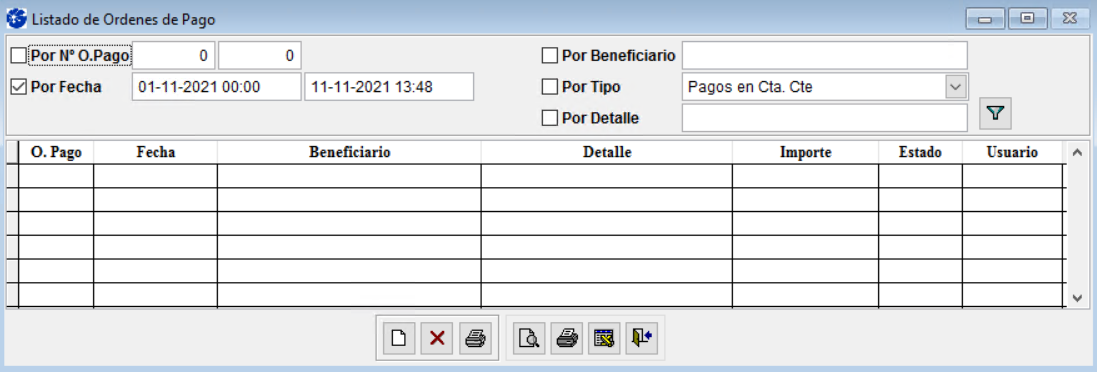 Para realizar una nueva Orden de Pago ingrese al ícono de la hoja en blanco. Observará que se despliega la siguiente planilla: