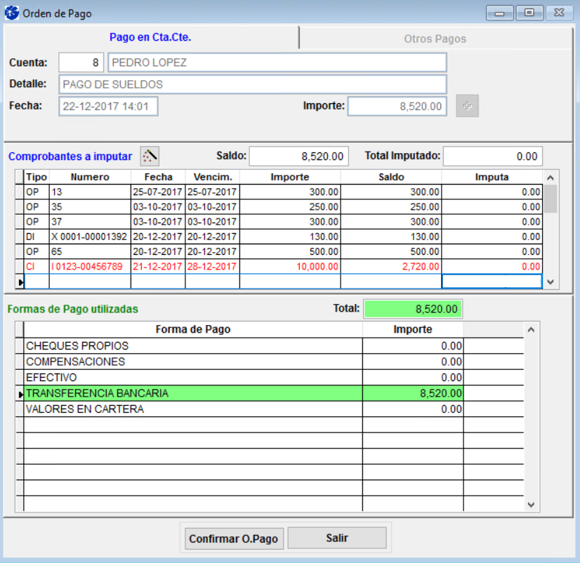 Una vez realizados estos pasos confirme la orden de pago haciendo clic en el ícono ”Confirmar O. Pago”.