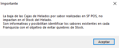 Las bajas de Cajas de Helados por sabor realizadas desde SF POS, no impactan en el Stock del Helado.