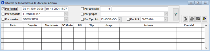 SUB MENÚ INFORME DE MOVIMIENTO DE STOCK POR ARTÍCULO