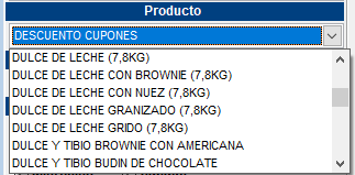 Aquí en este apartado seleccione el artículo “Descuento cupones”, en este artículo, se acumularán todos los descuentos realizados por Cupones Grido Check redimidos en el punto de venta dentro del periodo filtrado.