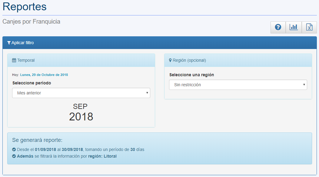 Utilizando los íconos a la derecha de la pantalla, podrá ademas realizar un nuevo filtro o exportar esta información a excel.