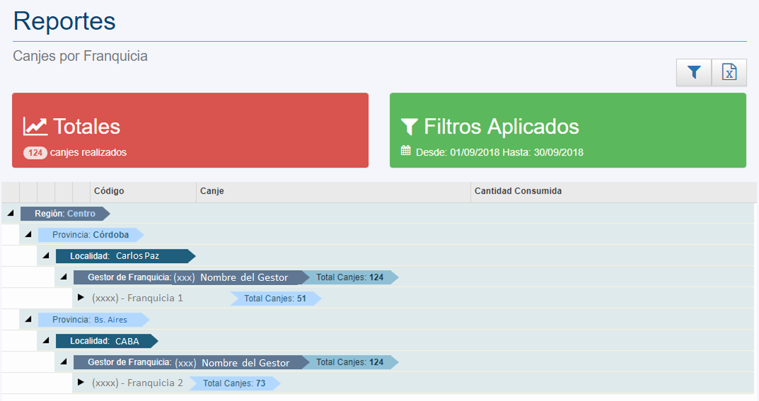 SUB MENÚ RESUMEN DE CANJES POR FRANQUICIA