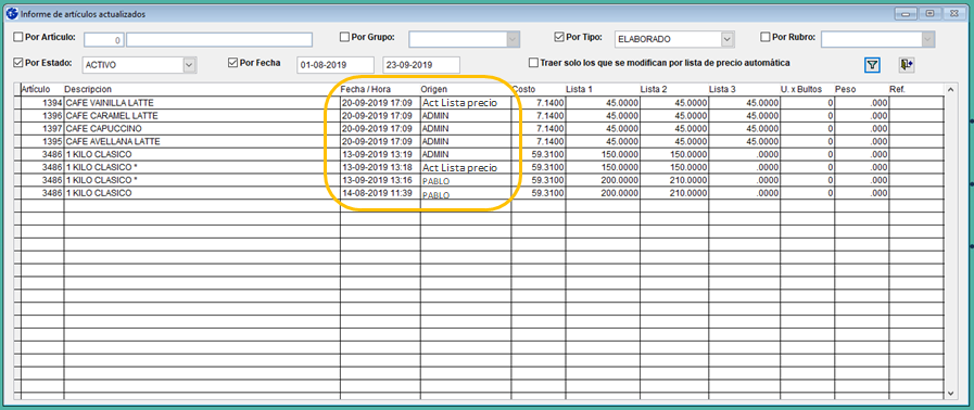 Incorporamos un nuevo Informa para verificar los cambios ocurridos en los artículos, hayan sido manuales o automáticos.