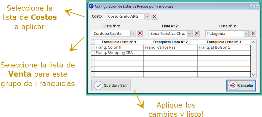 Esta configuración se realiza una sola vez con el objetivo de definir en su SF GESTIÓN, qué listas de precios desea aplicar a su estructura comercial.
