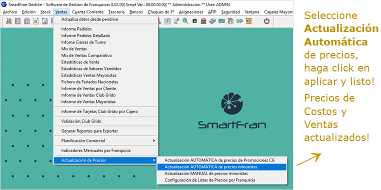 Podrá realizar el Update de manera automática, descargando y actualizando sus Sistemas de forma rápida, simple y en el momento que lo desee. Sin necesidad de interrumpir las actividades de la Heladería.