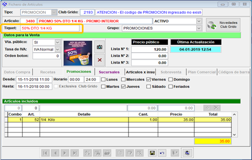 Se habilitó la opción para editar el Texto que aparece en el Ticket impreso al Cliente respecto de Productos, Promociones o Canjes. De este modo cada Franquiciado podrá tipear el texto que desea visualizar en sus Tickets de clientes.