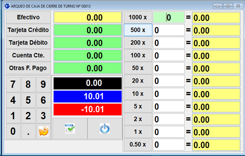 Se agregó el billete de $1000 (mil pesos) en el Arqueo de Cierre de Turno con el objetivo de poder realizar el registro correcto con la denominación vigente. También se eliminó del listado la moneda de $0.25 (veinticinco centavos).