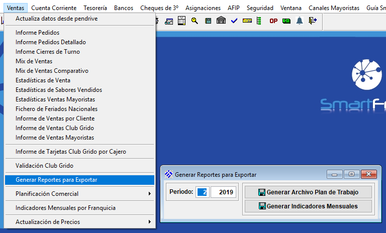 No notará cambios en el archivo. Identificará el panel de exportación en SF Gestión en el "Menú Ventas / Generar Reportes para Exportar"